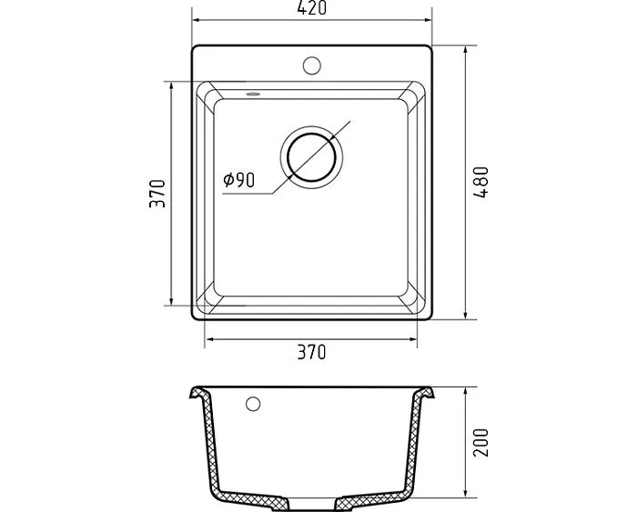 Габариты чаши (ШхГхВ) 370х370х200 мм