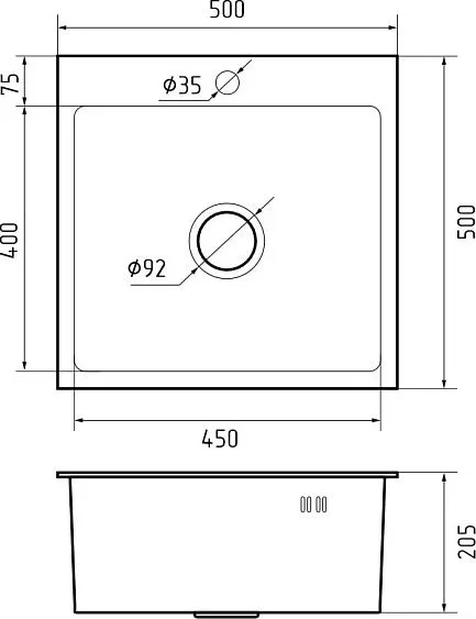 | Диаметр сливного отверстия | 92 мм |