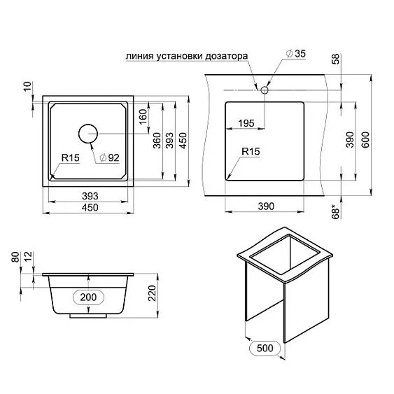 | Тип монтажа | под столешницу |