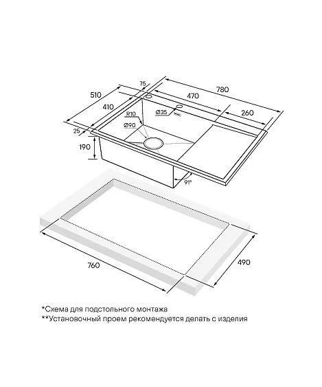 Комплектация крепеж для врезного монтажа, отводная арматура (слив-перелив), сифон бутылочного типа, инструкция/гарантийный талон