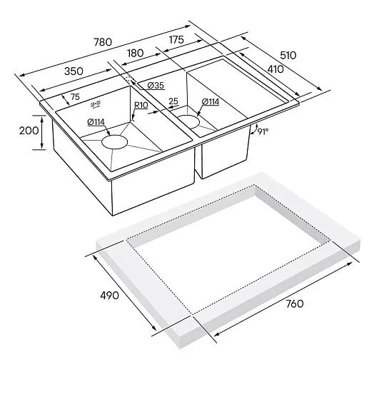 Толщина мойки 1.2 мм