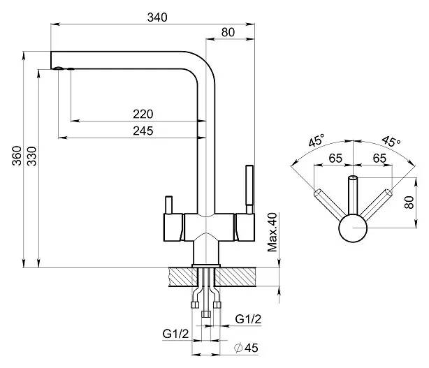 | Высота излива | 330 мм |