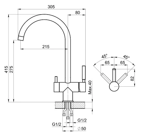 | Высота излива | 275 мм |