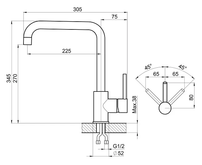 | Высота смесителя | 345 |