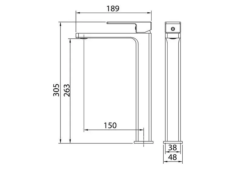 Высота излива 263 мм