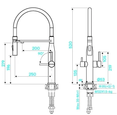 | Высота смесителя | 520 мм |