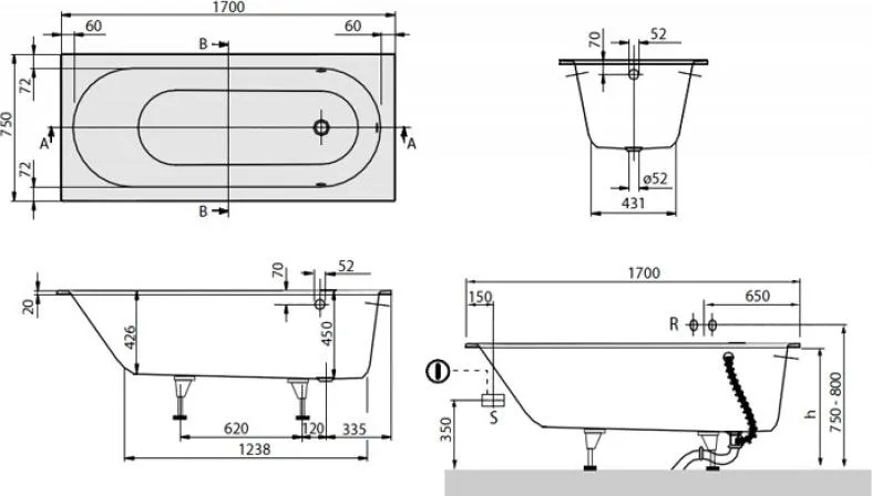 | Габариты (ШхГхВ) | 1700х750х426-450 мм |