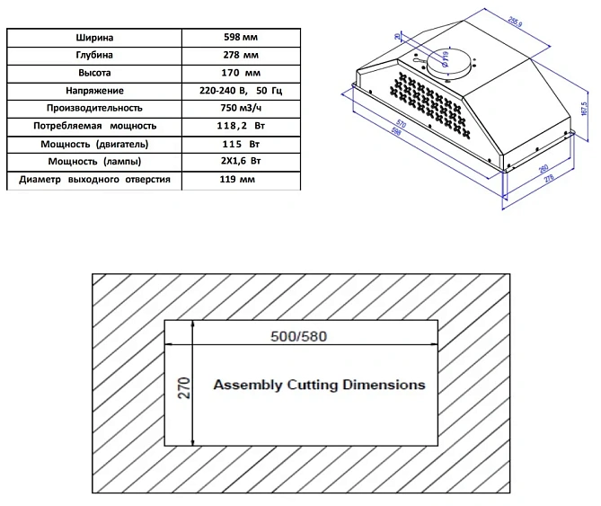 | Тип | встраиваемая вытяжка |