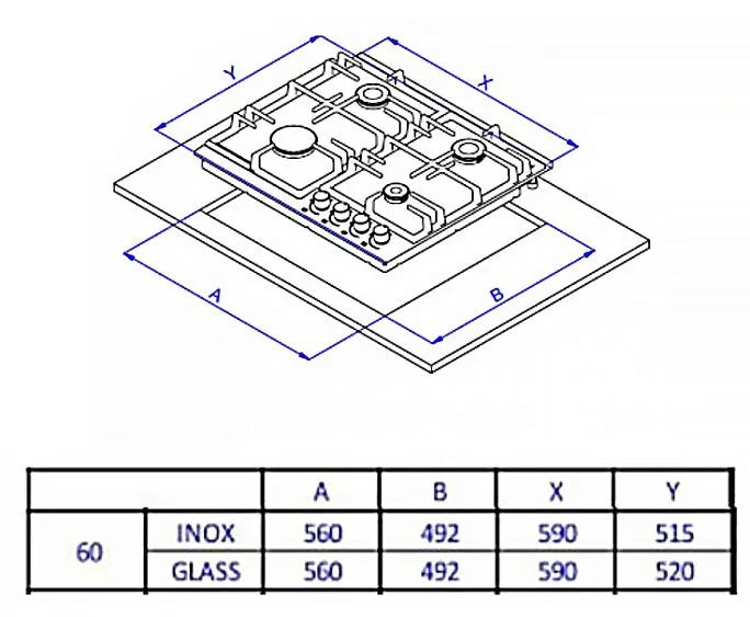 | Тип | газовая варочная поверхность |